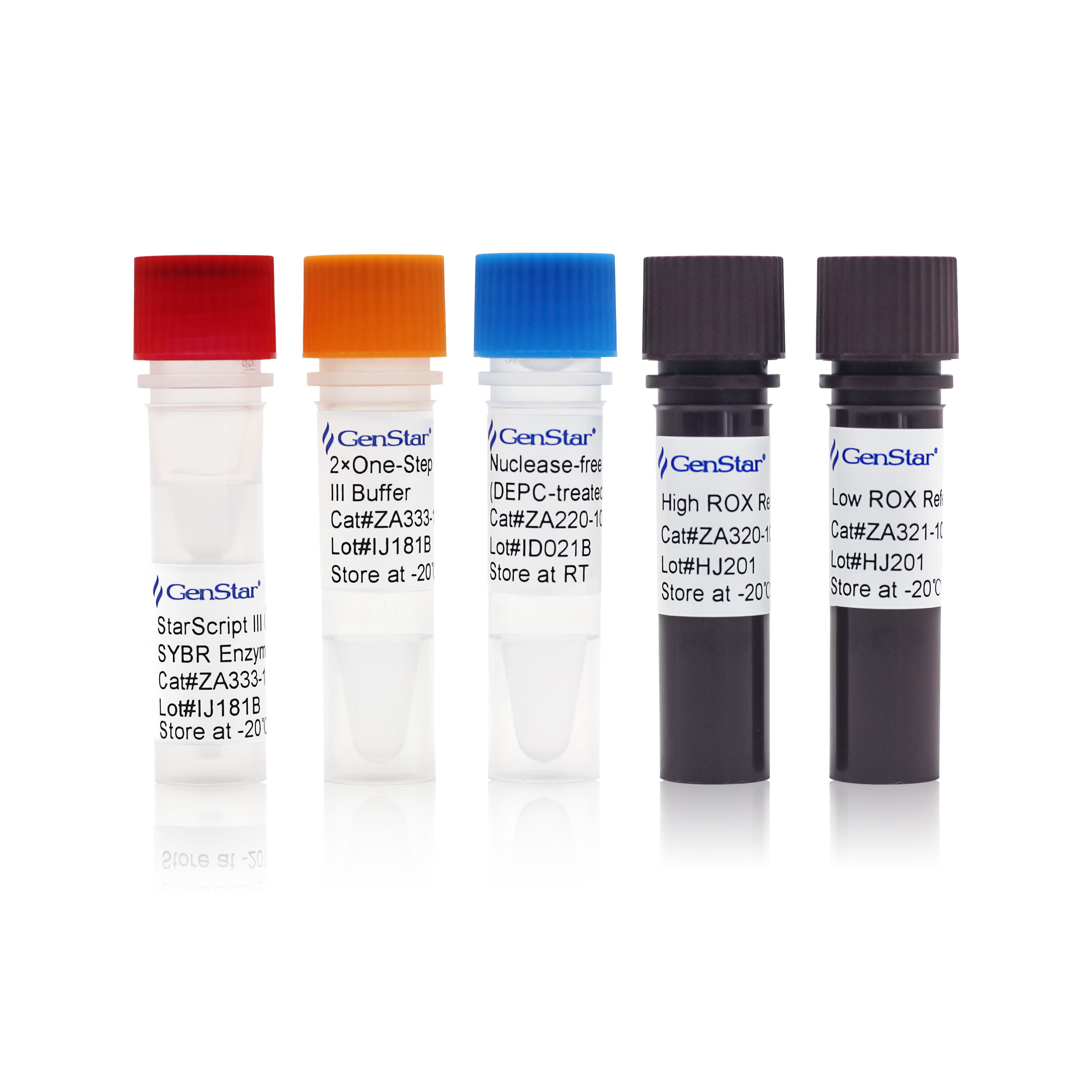 StarScript III One-Step qRT-PCR SYBR Kit 是采用 SYBR Green I 嵌合熒光法進(jìn)行一步法實(shí)時(shí)熒光定量檢測(cè)的專用試劑盒。使用本制品進(jìn)行 Real Time RT-PCR 反應(yīng)時(shí)以提取的 RNA 為模版,在同一反應(yīng)管內(nèi)連續(xù)進(jìn)行反轉(zhuǎn)錄和熒光定量檢測(cè),操作簡(jiǎn)單,并能有效防止污染?;?StarScript III 反轉(zhuǎn)錄酶、抗體型 HotStart Taq DNA 聚合酶、配合優(yōu)化的 Buffer 體系,對(duì)于二級(jí)結(jié)構(gòu)復(fù)雜和 GC 含量高的 RNA 模板擴(kuò)增效果好,非常適合于 RNA 病毒等微量目標(biāo)基因的檢測(cè)。