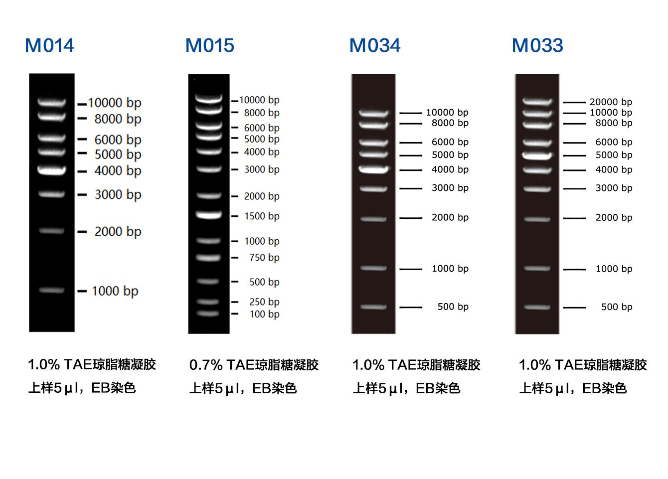 本產(chǎn)品為預(yù)混有 1x 上樣緩沖液的即用型 DNA 分子量標(biāo)準(zhǔn),由 13 條線狀雙鏈 DNA 條帶組成,適用于對(duì) 100 bp 至 10 kb 的雙鏈 DNA 分子大小的估算和粗略定量。本產(chǎn)品的 13 條帶分別為 100,250,500,750,1000,1500,2000,3000,4000,5000,6000,8000 和 10000 bp。其中 1500 bp、750 bp 條帶濃度最大,為 20 ng/µl,其余條帶濃度約為 10 ng/µl。