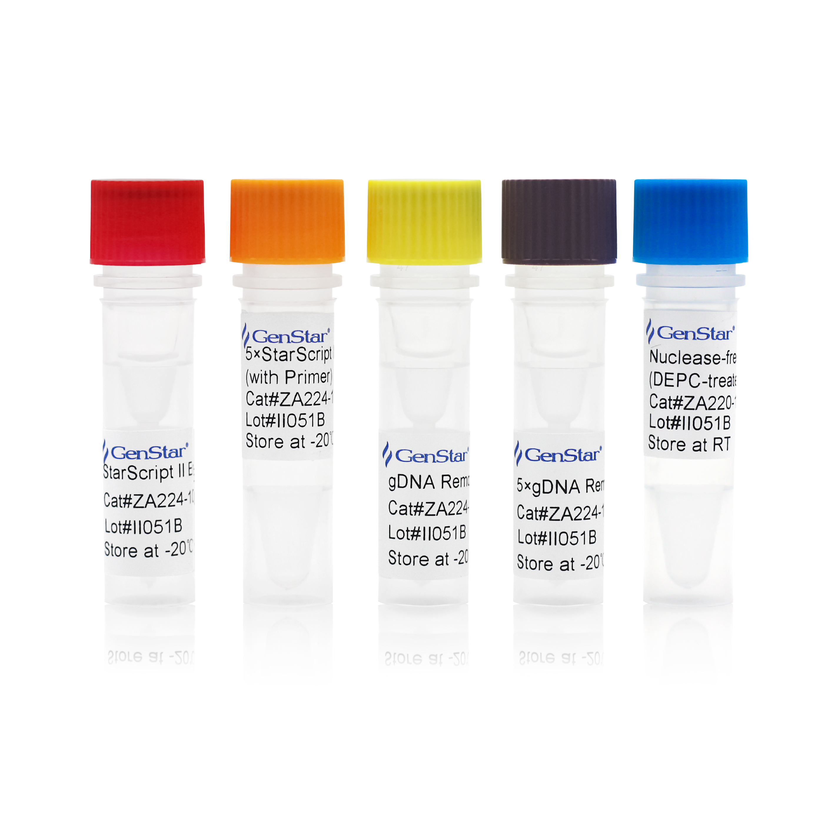 本產(chǎn)品是專為兩步法 RT-PCR 第一步實(shí)驗(yàn)設(shè)計(jì)的高靈敏度反轉(zhuǎn)錄反應(yīng)預(yù)混體系。gDNA Remover 可以有效的去除 RNA 提取過程中殘留的基因組 DNA,處理后的樣品可以直接用于后續(xù)實(shí)驗(yàn)。優(yōu)化的反應(yīng)體系(5×StarScript II Buffer (with Primer))中預(yù)混了 Random Primer 和 Oligo18 (dT) Primer,簡(jiǎn)化了加樣操作步驟,避免了操作誤差和污染的風(fēng)險(xiǎn);本產(chǎn)品可以從極低量的總 RNA 或 poly(A) mRNA 合成第一鏈 cDNA,合成的 cDNA 產(chǎn)量高,對(duì)后續(xù)的 PCR 或 real time PCR 實(shí)驗(yàn)兼容性好,適合于各種耐熱 DNA 聚合酶。