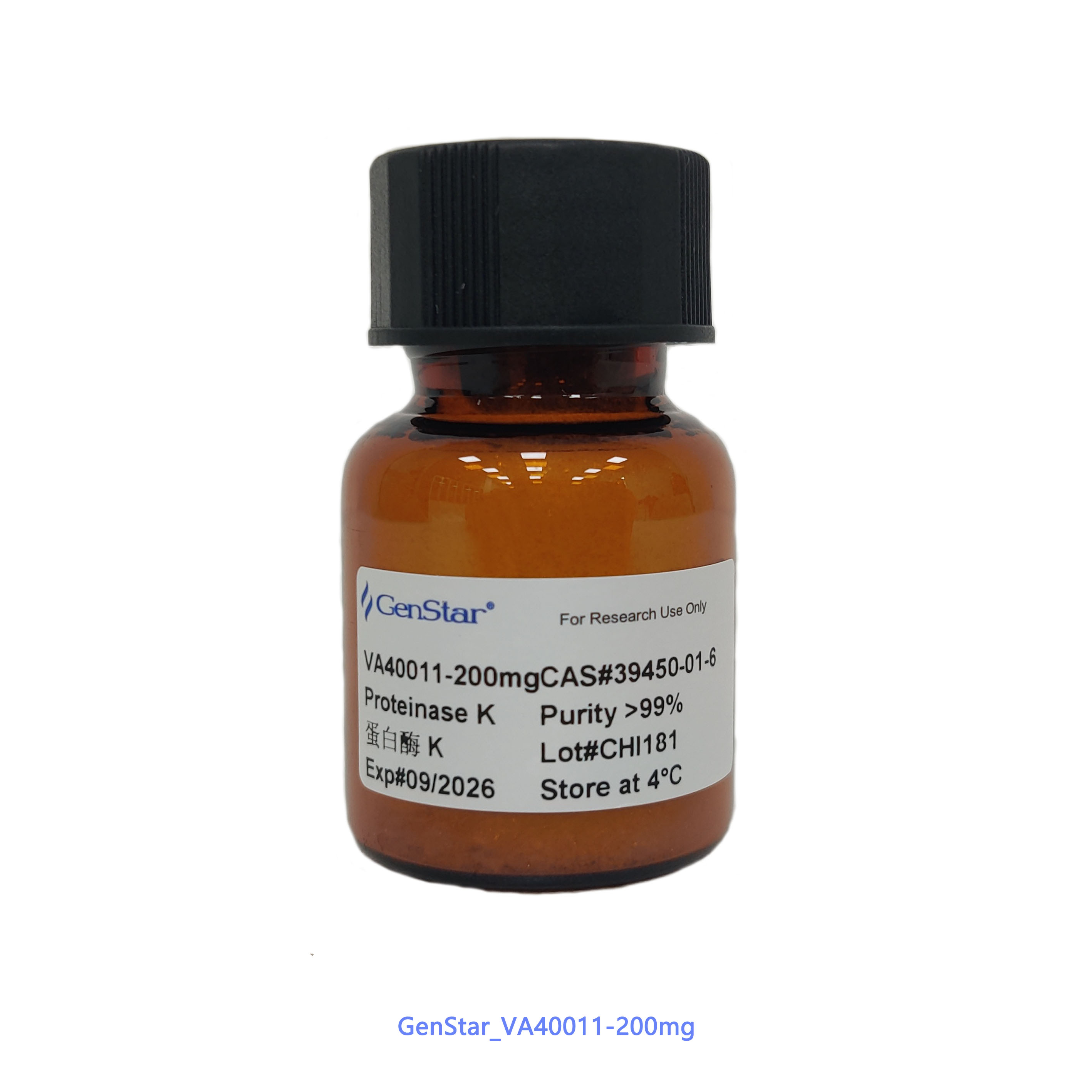 Proteinase K(蛋白酶 K)是一種廣譜的、高活性絲氨酸蛋白酶,其活性受 pH 值、高溫、EDTA、去垢劑和尿素等因素的影 響較小,因而被廣泛應(yīng)用于核酸提取和純化時促進細胞裂解、去除蛋白質(zhì)污染,蛋白結(jié)構(gòu)和功能分析,也可用于酶促反應(yīng)后, 酶的消化去除等。