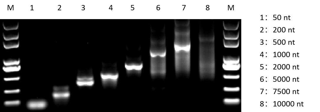 GenStar #R101 可高度特異識別 T7 啟動子序列,能夠合成 50-10000 nt 的 RNA 產(chǎn)物。