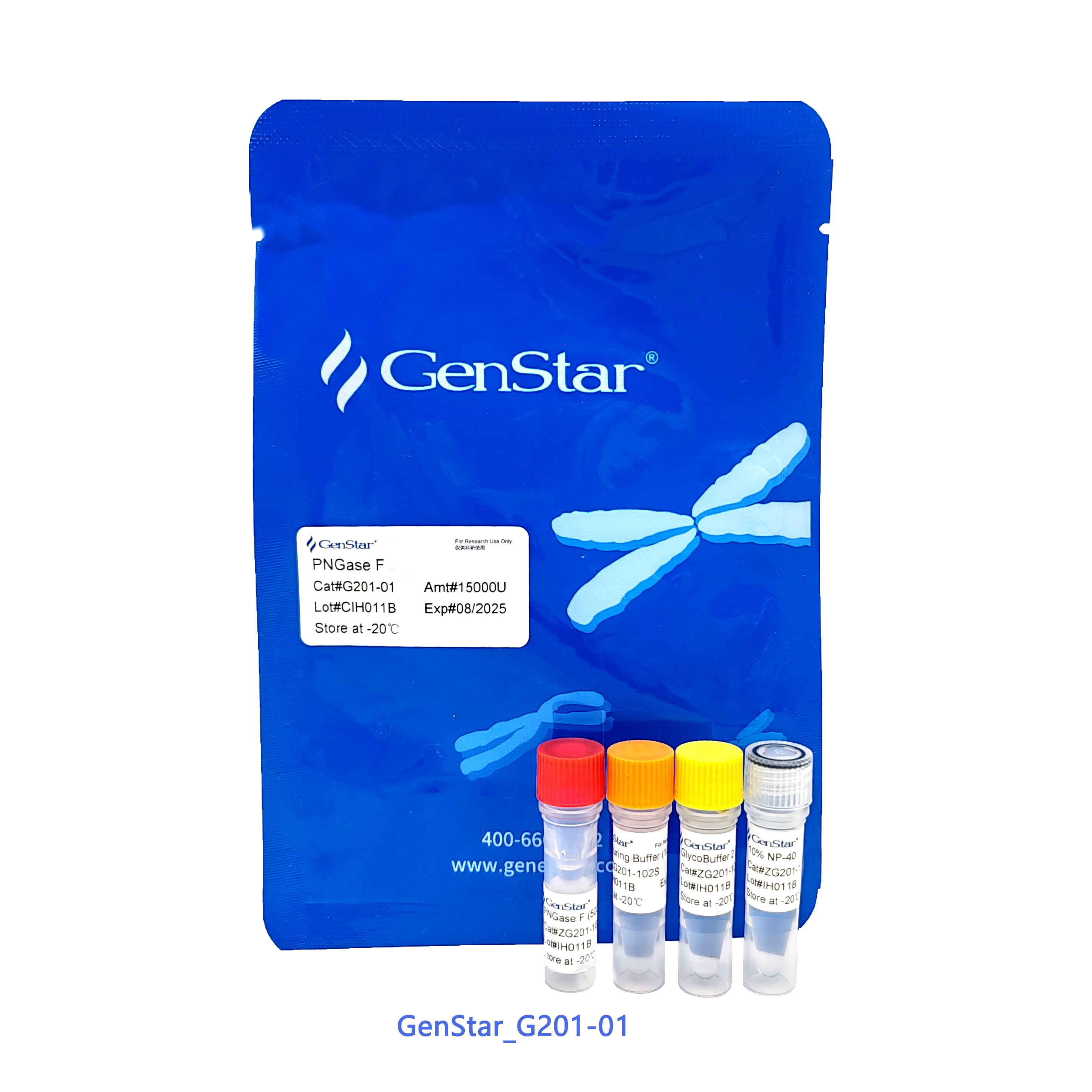 自 2024.08 起,G201 產(chǎn)品進行了組分變更。變更后的產(chǎn)品提供肽 N-糖苷酶 F 適配的三種反應 buffer 即 Denaturing Buffer (10×)、GlycoBuffer 2 (10×)和 10% NP-40,使產(chǎn)品使用更加便捷。
