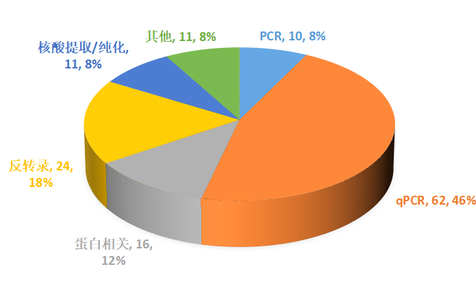 GenStar產(chǎn)品涉及163個;共有133篇SCI文章,其中IF>5的文章72篇,本季度IF值最高達39.3。qPCR系列產(chǎn)品當仁不讓依然是發(fā)表文章最多,應用最廣的明星系列產(chǎn)品,其發(fā)表文獻占62%。